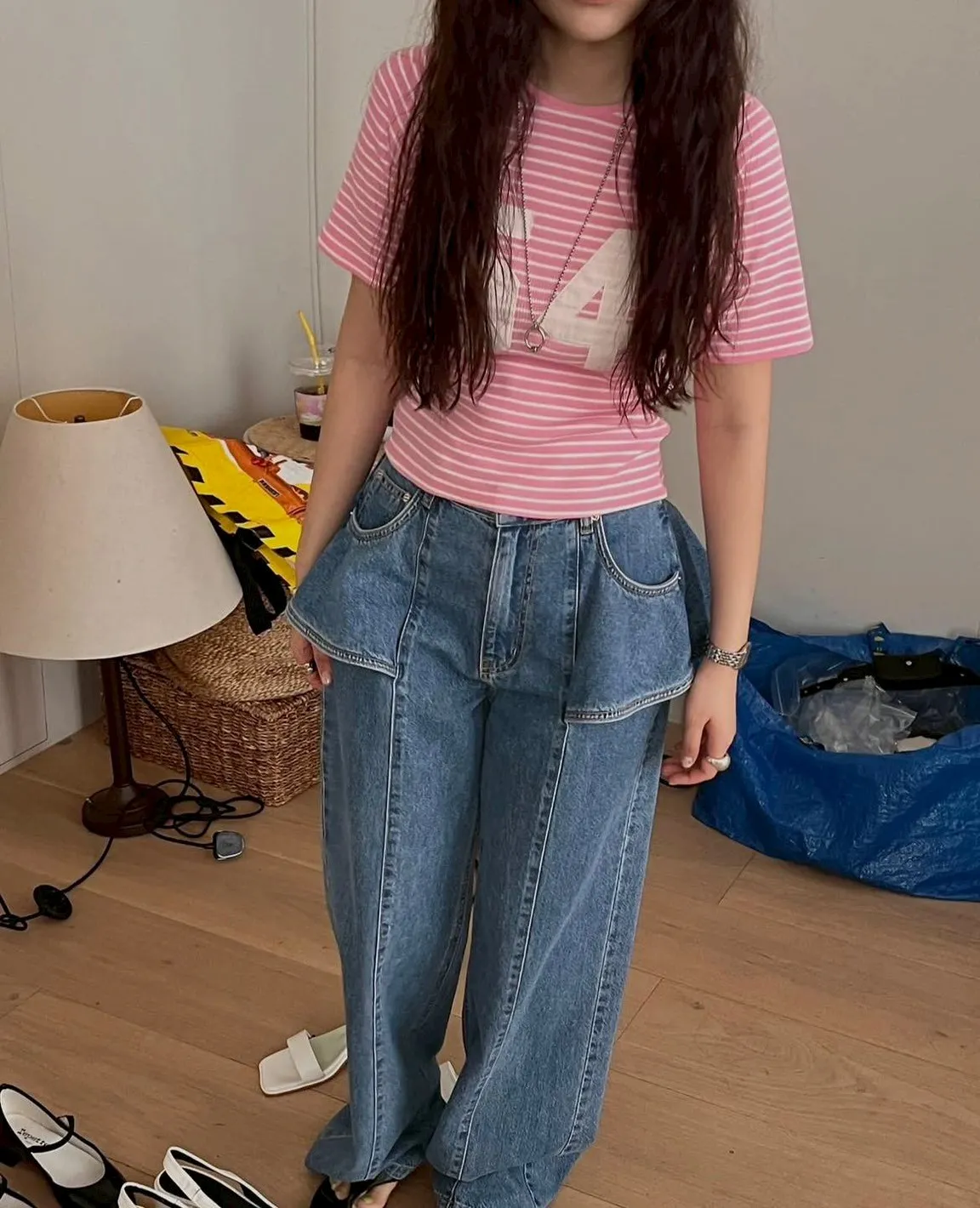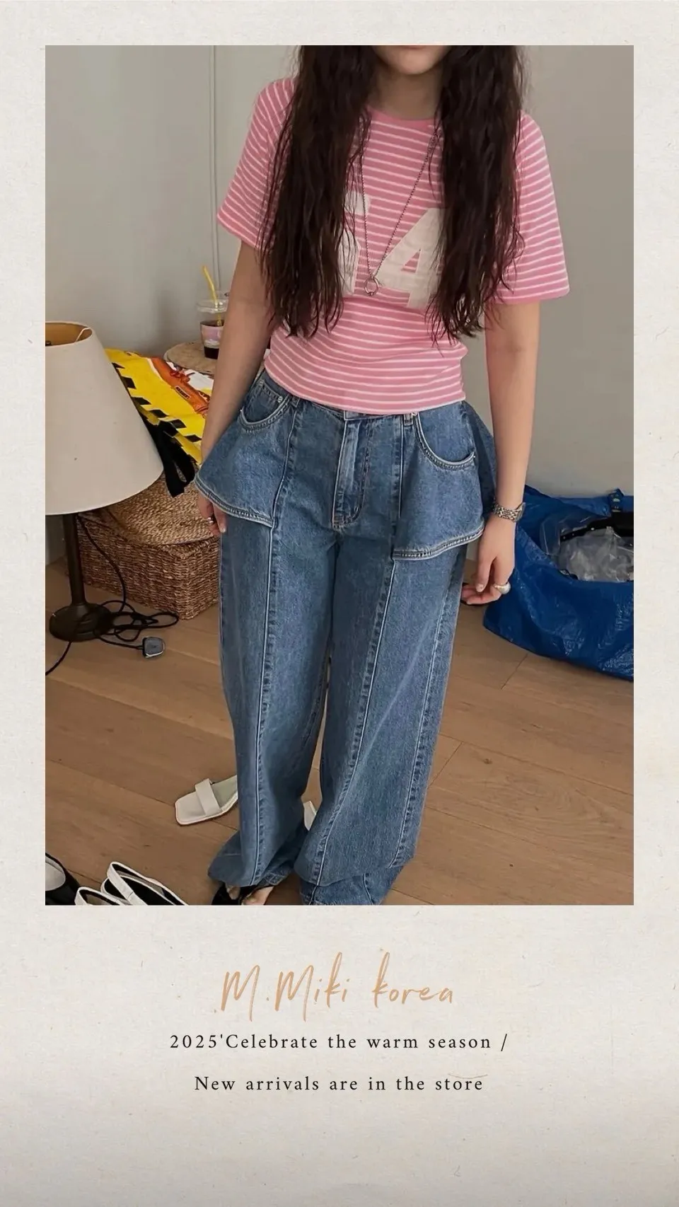 3D感荷葉造型牛仔褲