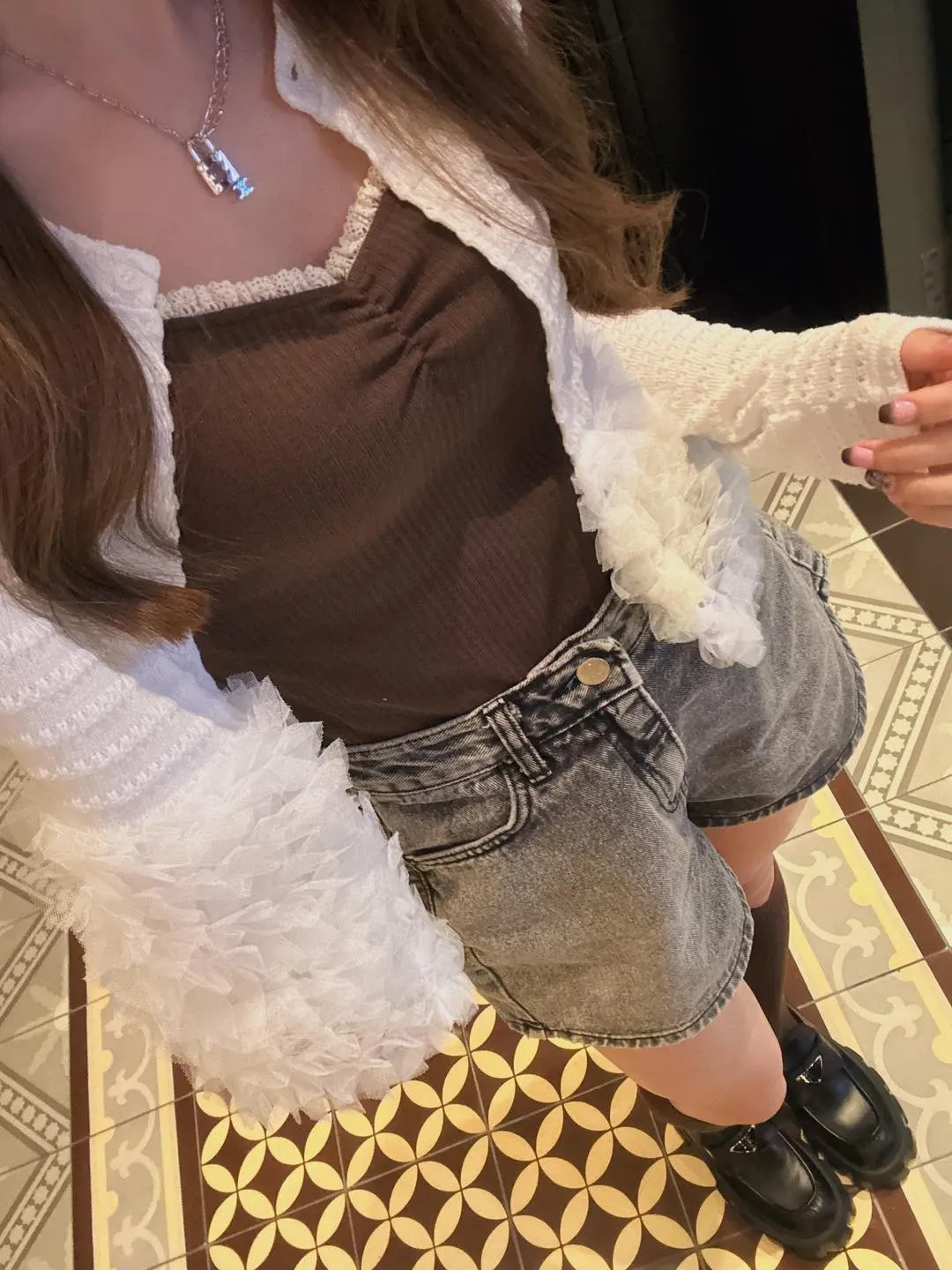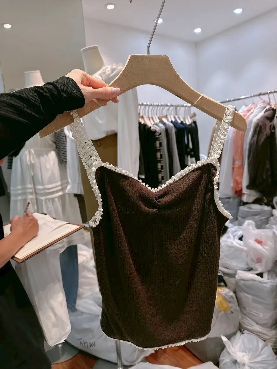 蕾絲坑條背心