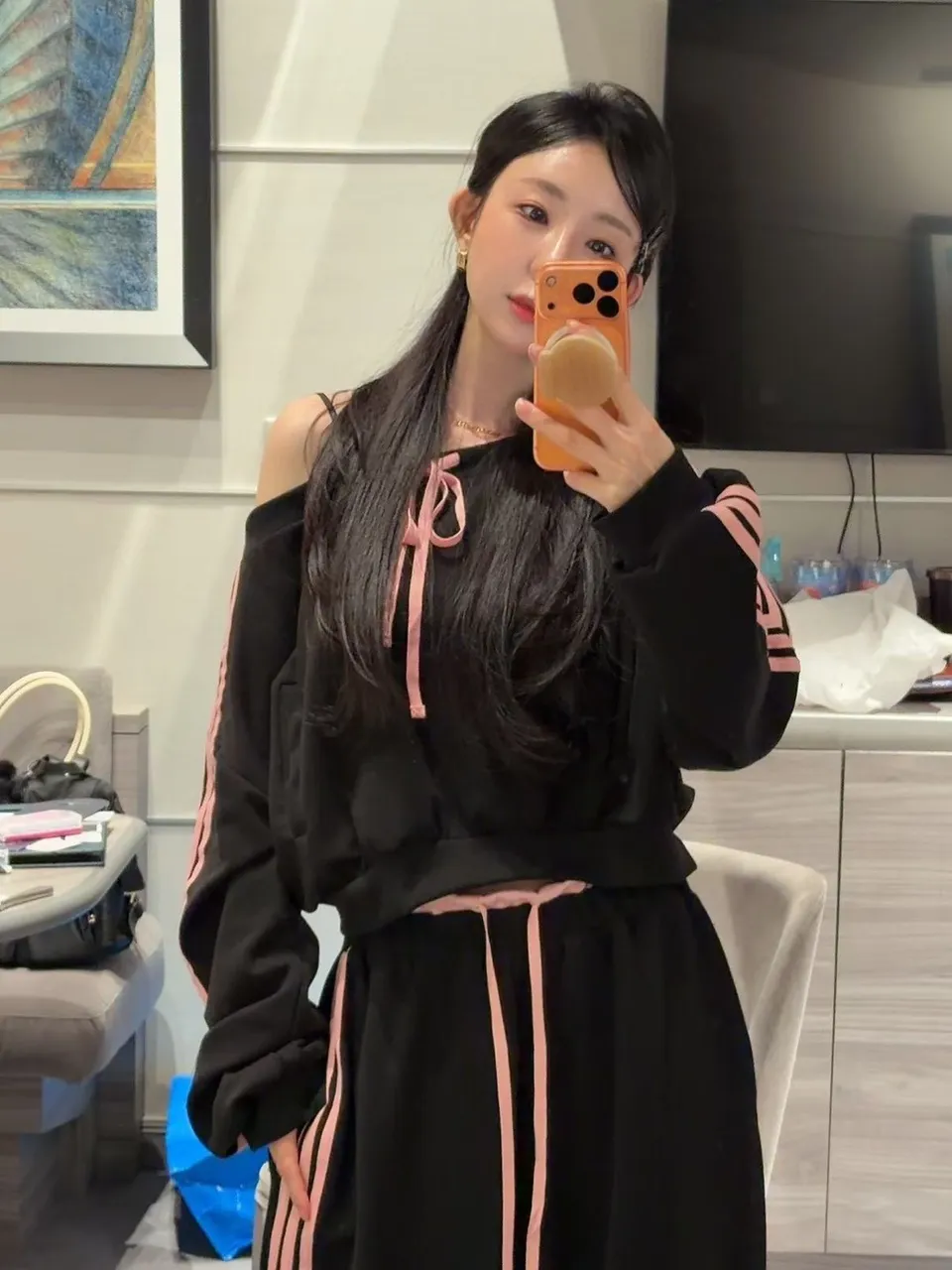 斜肩蝴蝶上衣