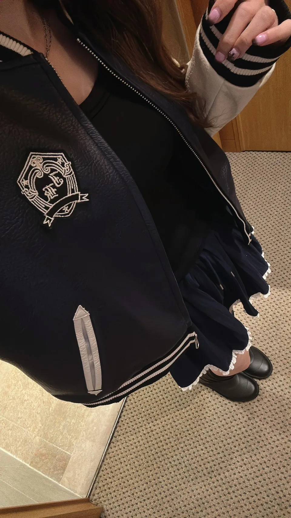 又到了穿皮外套的季節🤍美式校園風配色皮外,兼具復古與時髦,搭配寬褲是慵懶個性girl,搭配短裙是甜酷風!