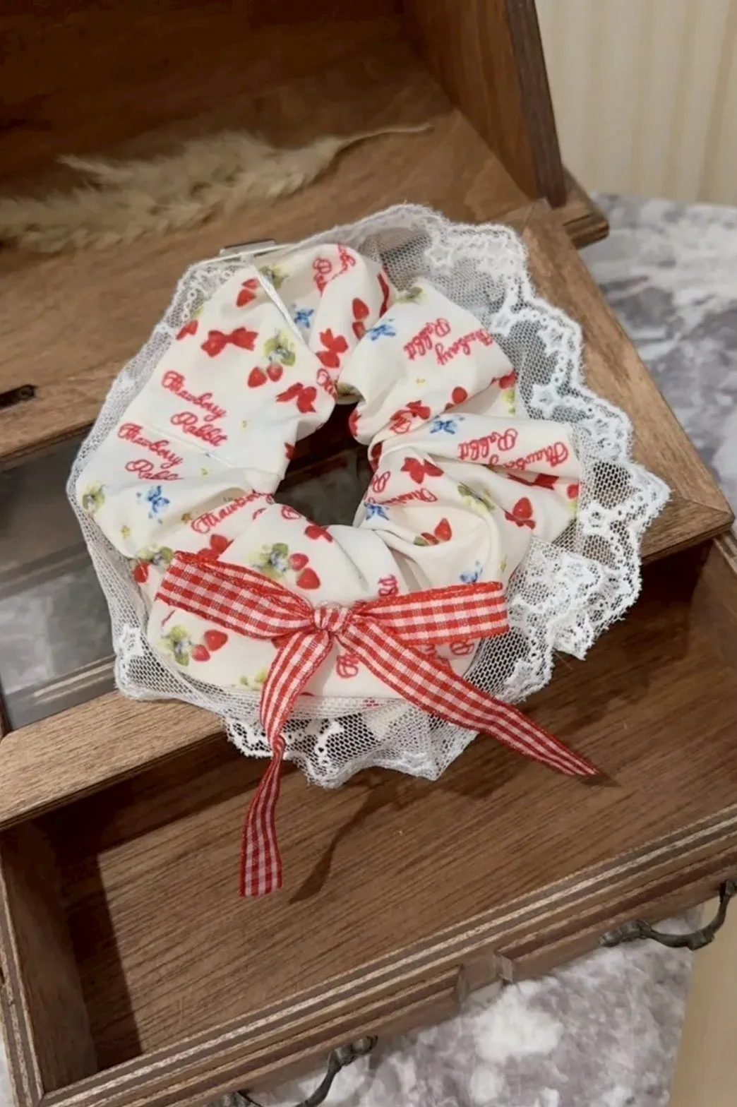 蕾絲小草莓配色髮圈