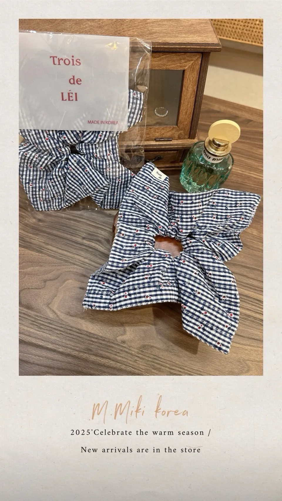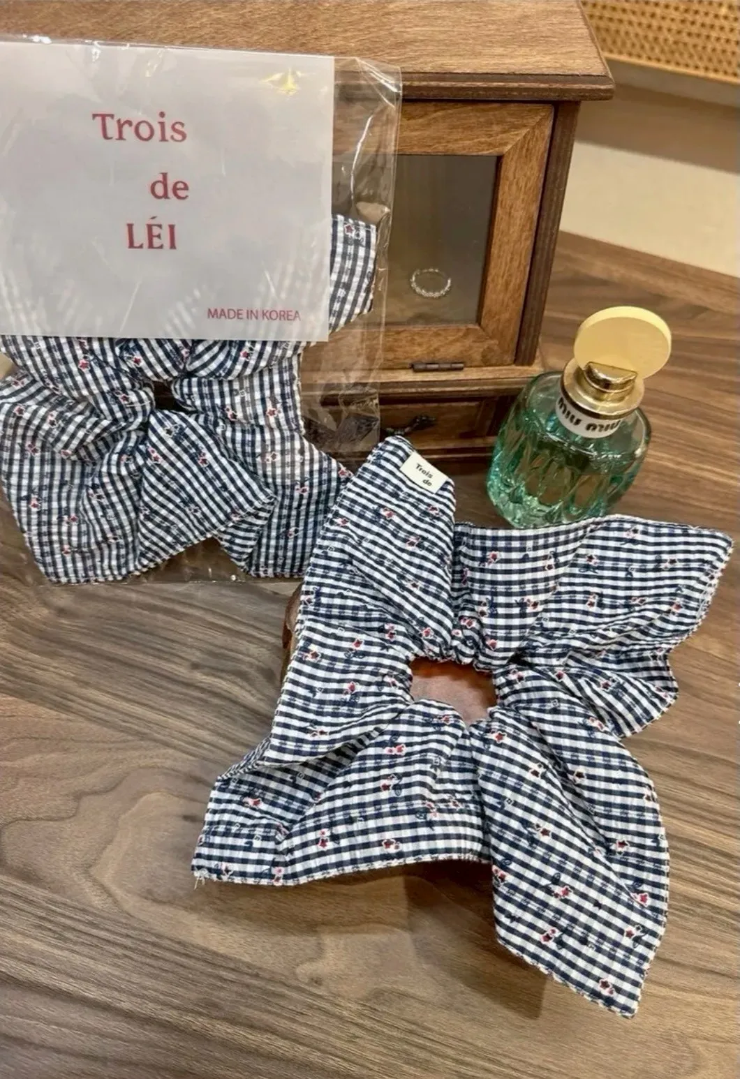 小花格紋方形髮圈