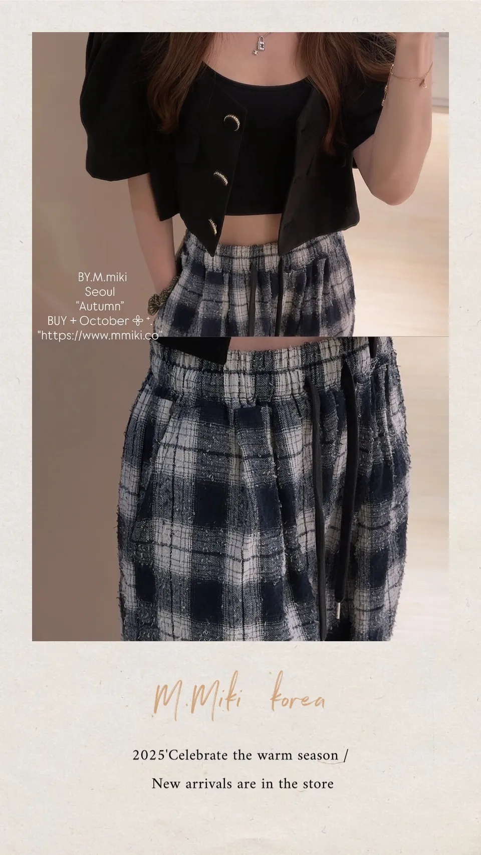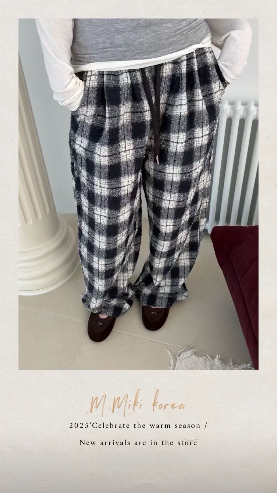毛呢小香風格子褲