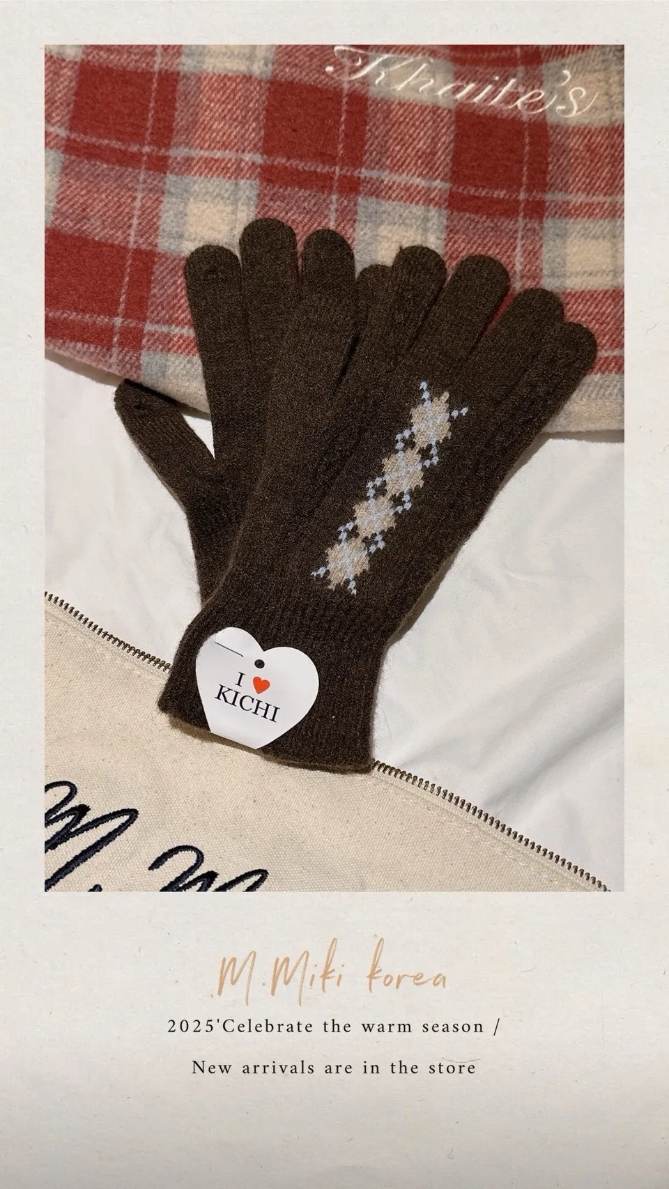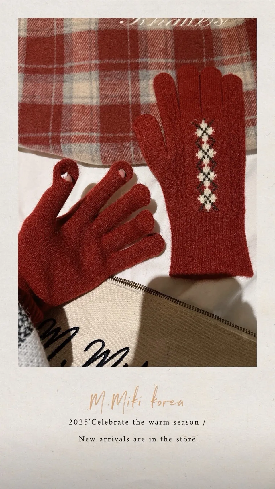麻花菱格保暖手套